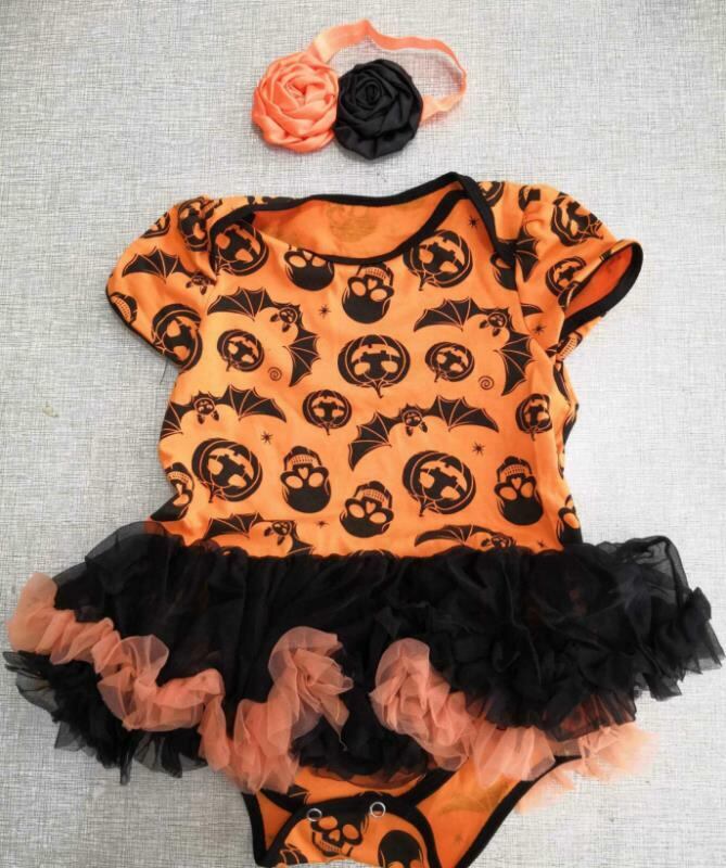 ハロウィンフリルのベビーロンパースとバラのヘアバンドセットです。