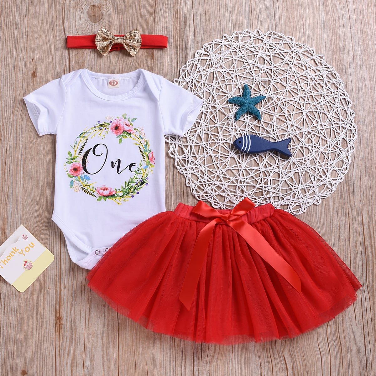 70-80cm1歳誕生日ドレス赤 Tシャツロンパース&チュチュスカート